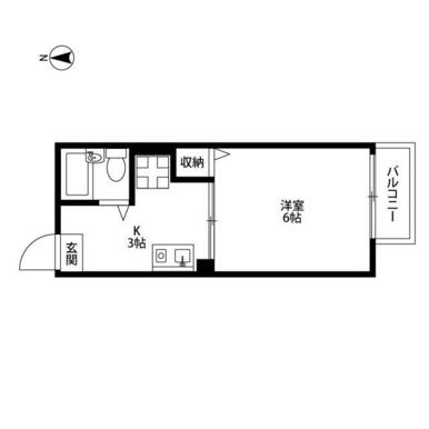 | 間取り | 1K(K3 バス0 洋6 玄関・廊下0) | 主要採光面 | 南 |